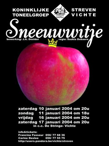 Speeldata zaterdag 10 januari 2004 om 19:00 in CC De Stringe zondag 11 januari 2004 om 17:00 in CC De Stringe vrijdag 16 januari 2004 om 19:00 in CC De Stringe zaterdag 17 januari 2004 om 19:00 in CC De Stringe zaterdag 8 mei 2004 om 18:00 in CC De Stringe