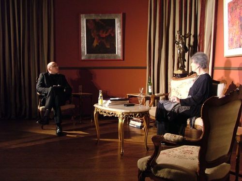 Na enkele seconden slaat in de verte de voordeur dicht. Weer enkele seconden later zijn naderende voetstappen te horen en wordt op de kamerdeur geklopt. Een journalist komt binnen, zet een tas naast de lege stoel en geeft de actrice een hand. Zij kijkt geamuseerd toe terwijl de interviewer zich installeert. Het schriftje en de dictafoon worden bovengehaald en het interview kan beginnen.